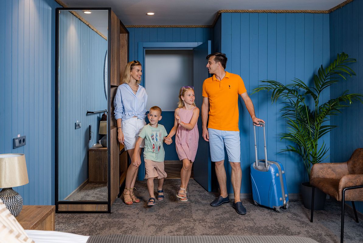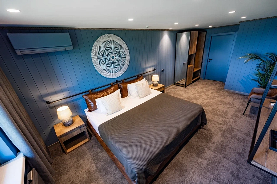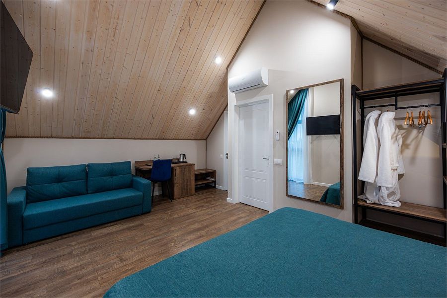 В стоимость проживания входит: рабочий стол, шкаф, телевизор, мини-бар, сейф, сплит-система, фен, душ, набор косметики и гигиенических принадлежностей, бесплатный Wi-Fi, вид из окна на Большой Кирпильский лиман.