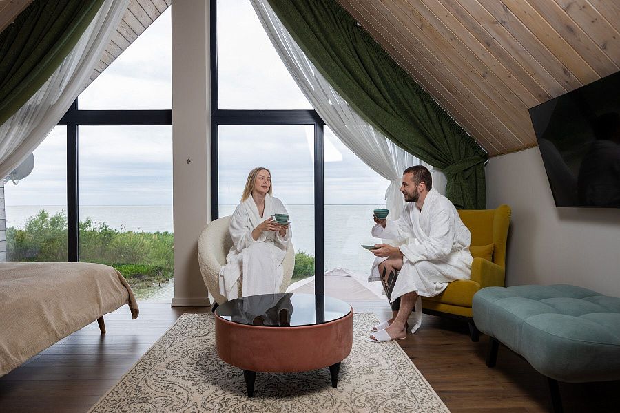Бело-голубой гостиничный комплекс с видом на бескрайний лиман создает камерную атмосферу релакса и уюта, а великолепная инфраструктура базы отдыха удовлетворит любое, даже самое искушенное, желание. В «Abrau Club на Плавнях» 4* вы можете не только насладиться единением с природой, но и активно провести время. Наши профессиональные егеря с радостью поделятся секретными местами гнездования пеликанов, организуют экскурсию на лодке по лиманам или отвезут на экоферму. Сафари-отель располагает 17 комфортабельными гостиничными номерами и 1 индивидуальным средством размещения, что гарантирует уединенный отдых вам, вашим друзьям и любимым.