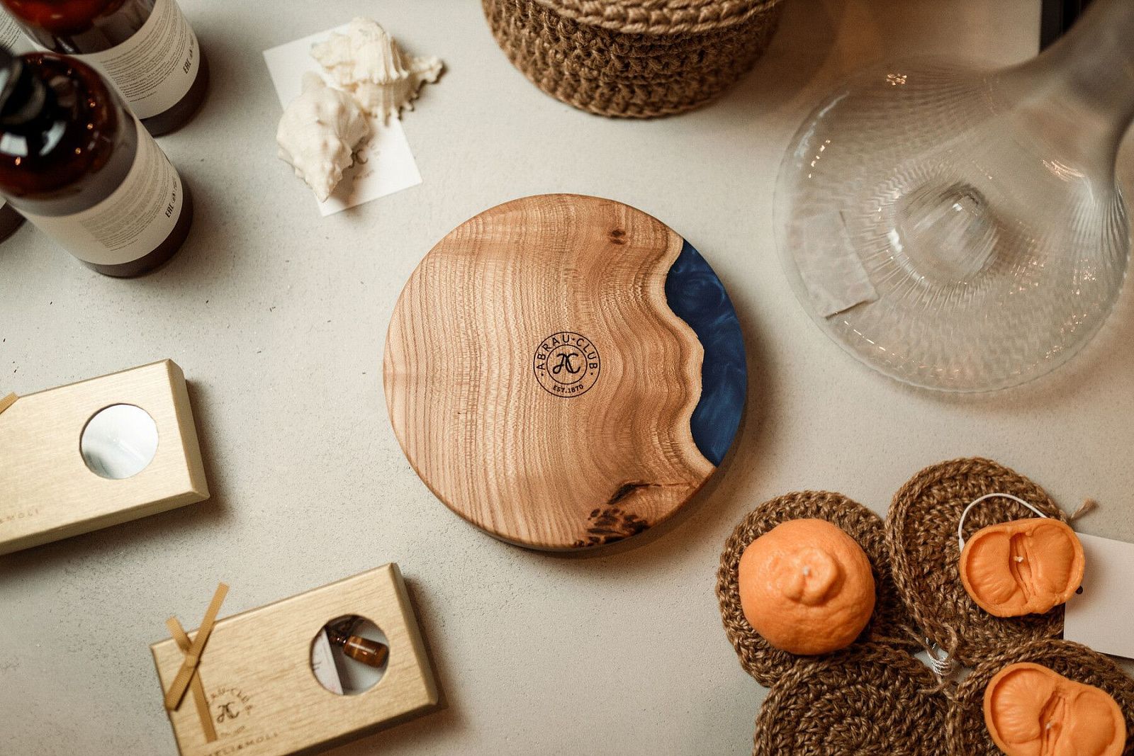 Внутри расположился магазин с тщательно отобранной коллекцией сувениров, аксессуаров для вина и предметов для отдыха. Здесь вы найдёте подарки, косметику, элементы декора и премиальный мерч Abrau Club — всё, что передаёт атмосферу этого места.