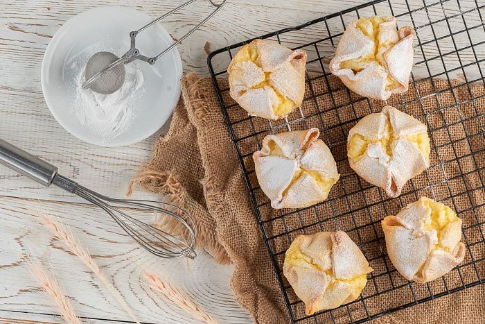 - Соффиони — итальянское пирожное из хрустящего теста и начинки из риккоты с лимонной цедрой.