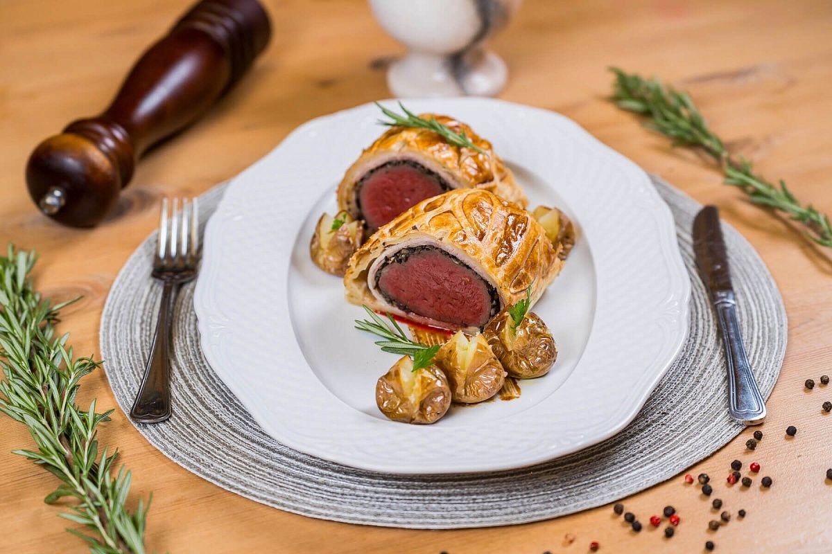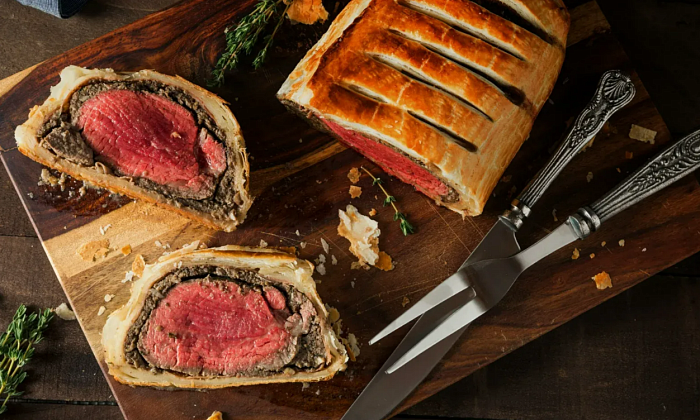 - Говядина Веллингтон - праздничное блюдо из говяжьей вырезки, запечённое в слоёном тесте;